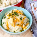 Transfer to a serving bowl and top with fresh chives before serving. You can also add grated cheddar to make it feel more potato-ish!